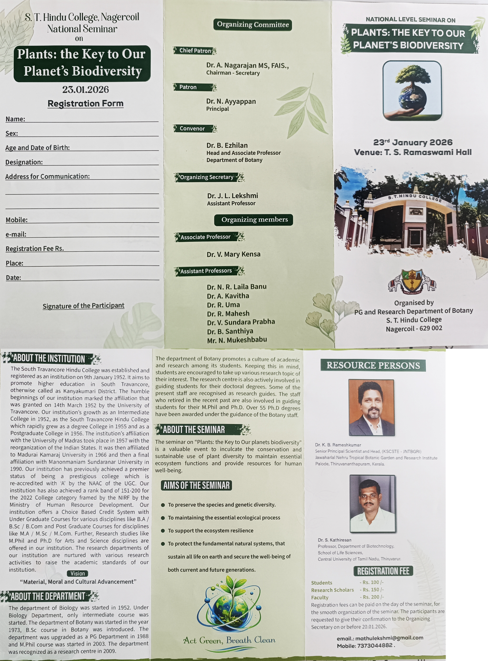 Department of Botant conducting a National Seminar on "Plants: The Key to ur Plant's Biodiversity on 23.01.2026
